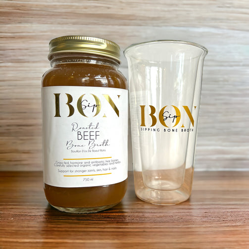 Handcrafted in-house, our savory Roasted Beef Bone Broth starts with premium, grass-fed beef bones, roasted to perfection and slow-simmered for hours to extract all the rich flavors and nutrients. Free from hormones and antibiotics, we blend these bones with organic vegetables, herbs, and spices to create a nutrient-dense broth that’s perfect for sipping anytime.